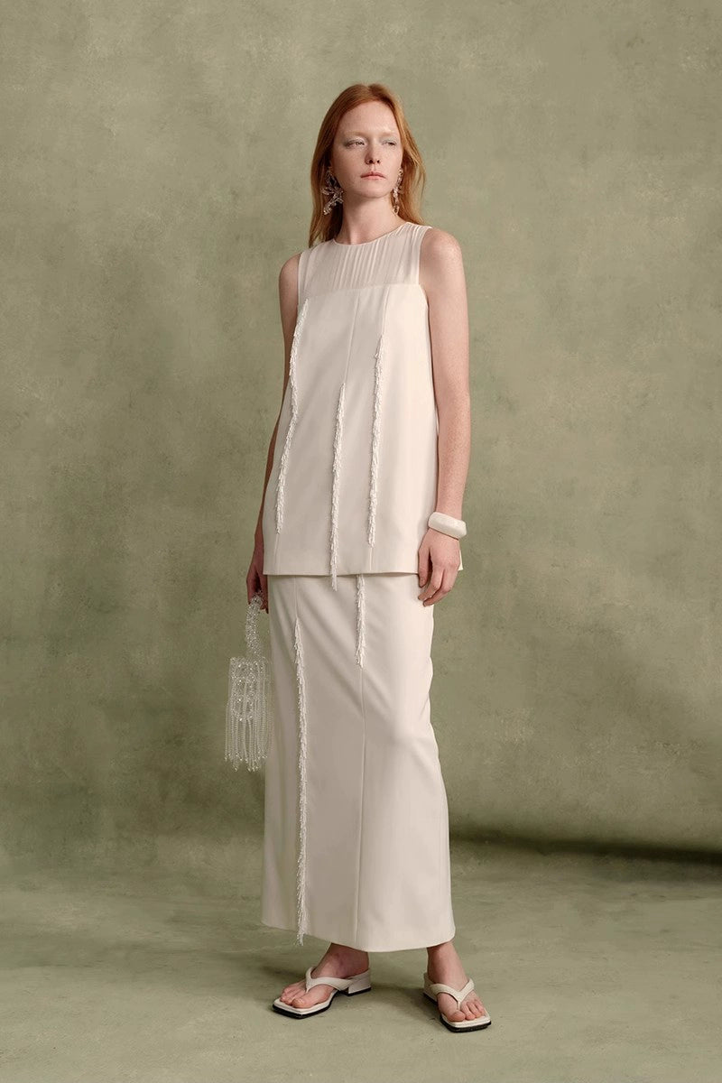 Sleeveless Crew Neck Vest, Lotus Leaf Skirt