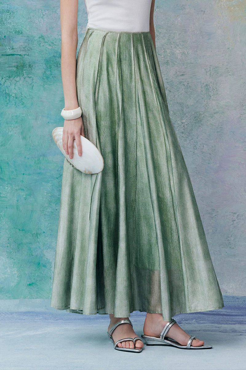 The A-line skirt redefines the conventional silhouette by transcending the traditional structural framework. It is...