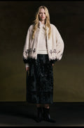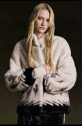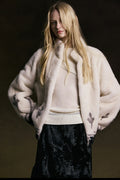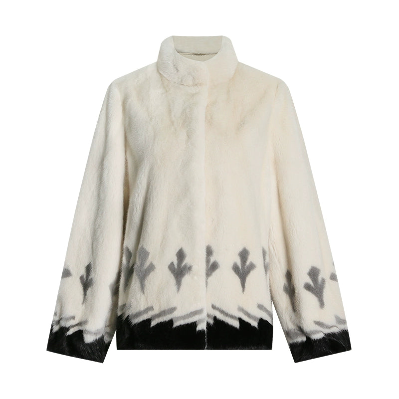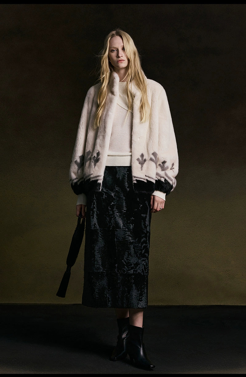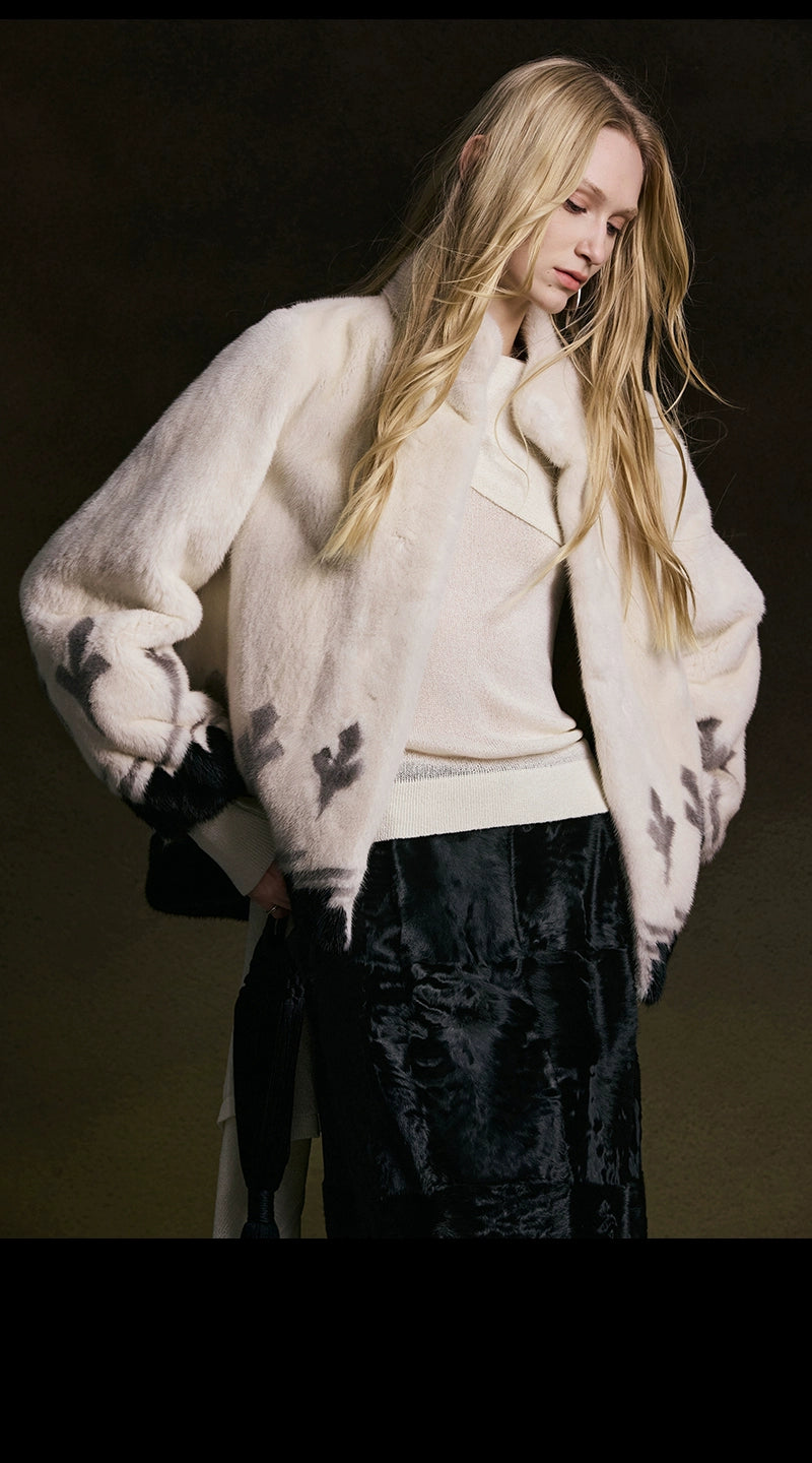 This stand-up collar mink coat features a refined and sophisticated silhouette. The soft, plush stand-up collar ensures warmth and comfort, while the garment's length is precisely tailored to align with the hip line, achieving visual and functional balance. Crafted from imported mink and lined with mulberry silk, the coat delivers an exceptional tactile experience, reflecting superior craftsmanship and premium material quality.