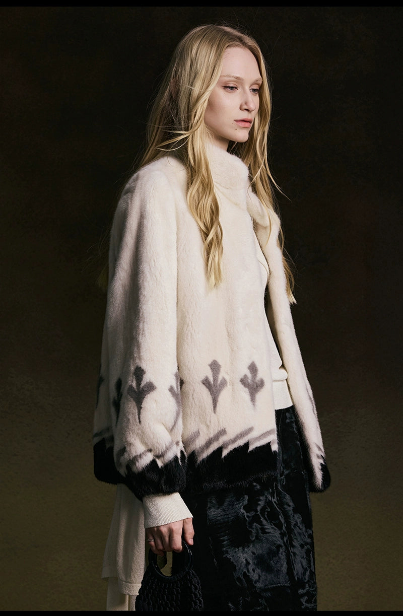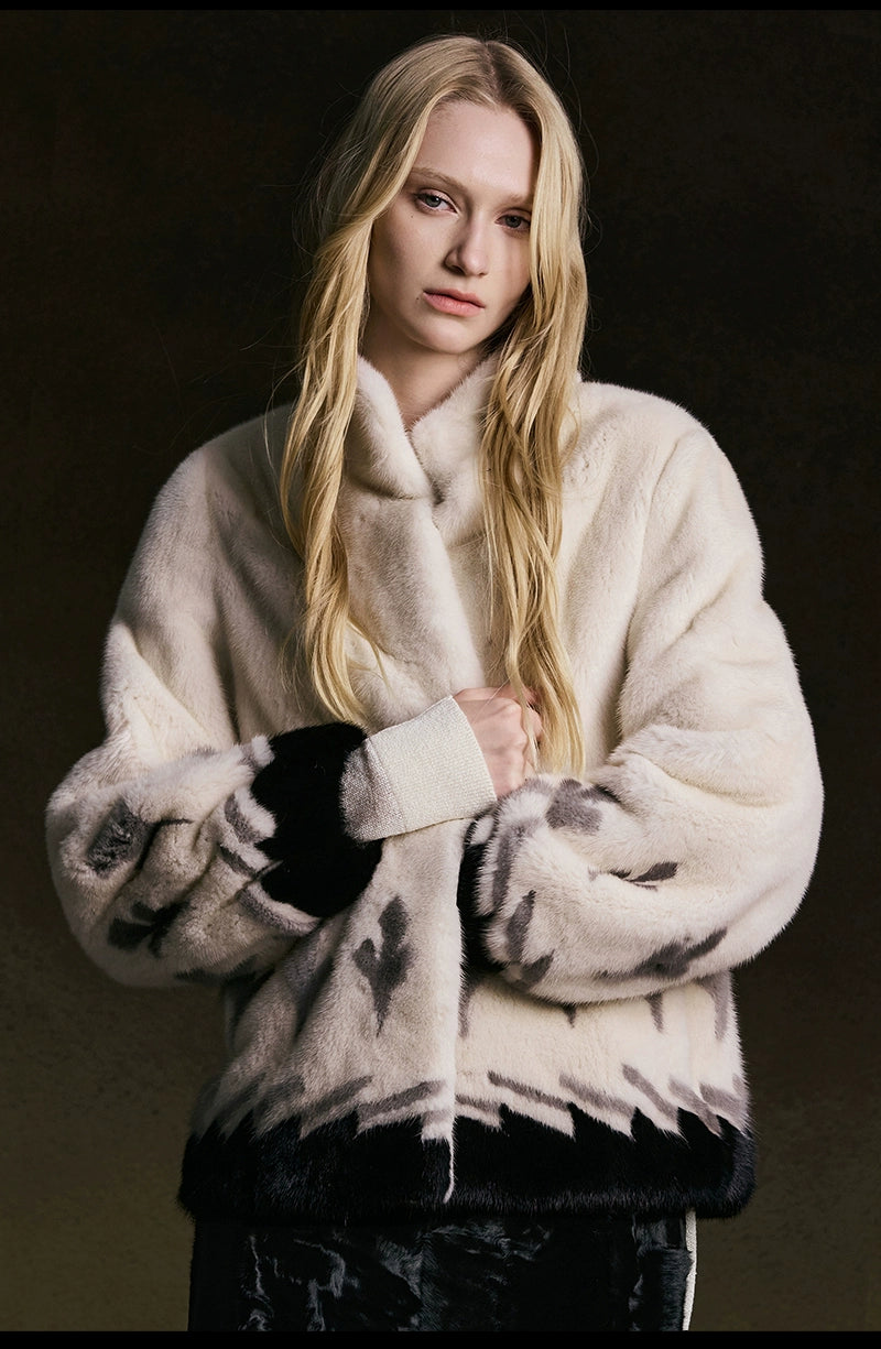 Artistic Color-Blocked Mink Fur Coat