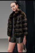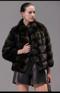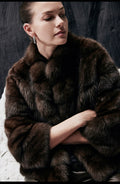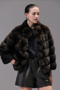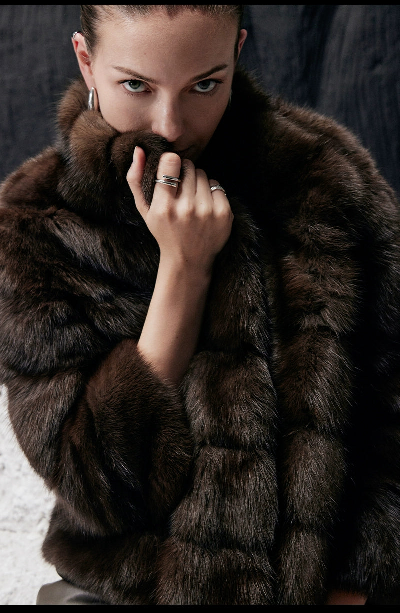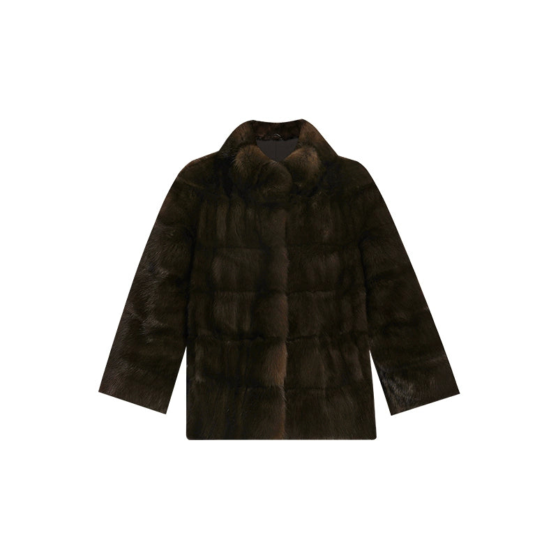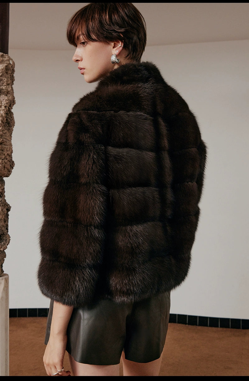 Dark Brown Stand-up Collar Short Fur Jacket