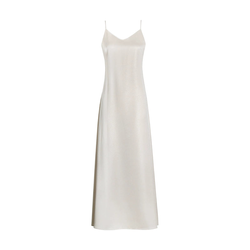 This classic V-neck strap dress represents a harmonious fusion of understated ease and timeless elegance. The minimalist A-line silhouette incorporates a thoughtfully proportioned hemline with flowing, seamless lines, contributing to a lightweight and figure-flattering profile that emphasizes quiet luxury. The skirt length is optimally designed to enhance overall body proportions. Whether worn as a standalone piece or layered beneath outerwear, it offers exceptional versatility, enabling effortless adaptation to various styling contexts and allowing the wearer to achieve a polished, fashion-forward look.