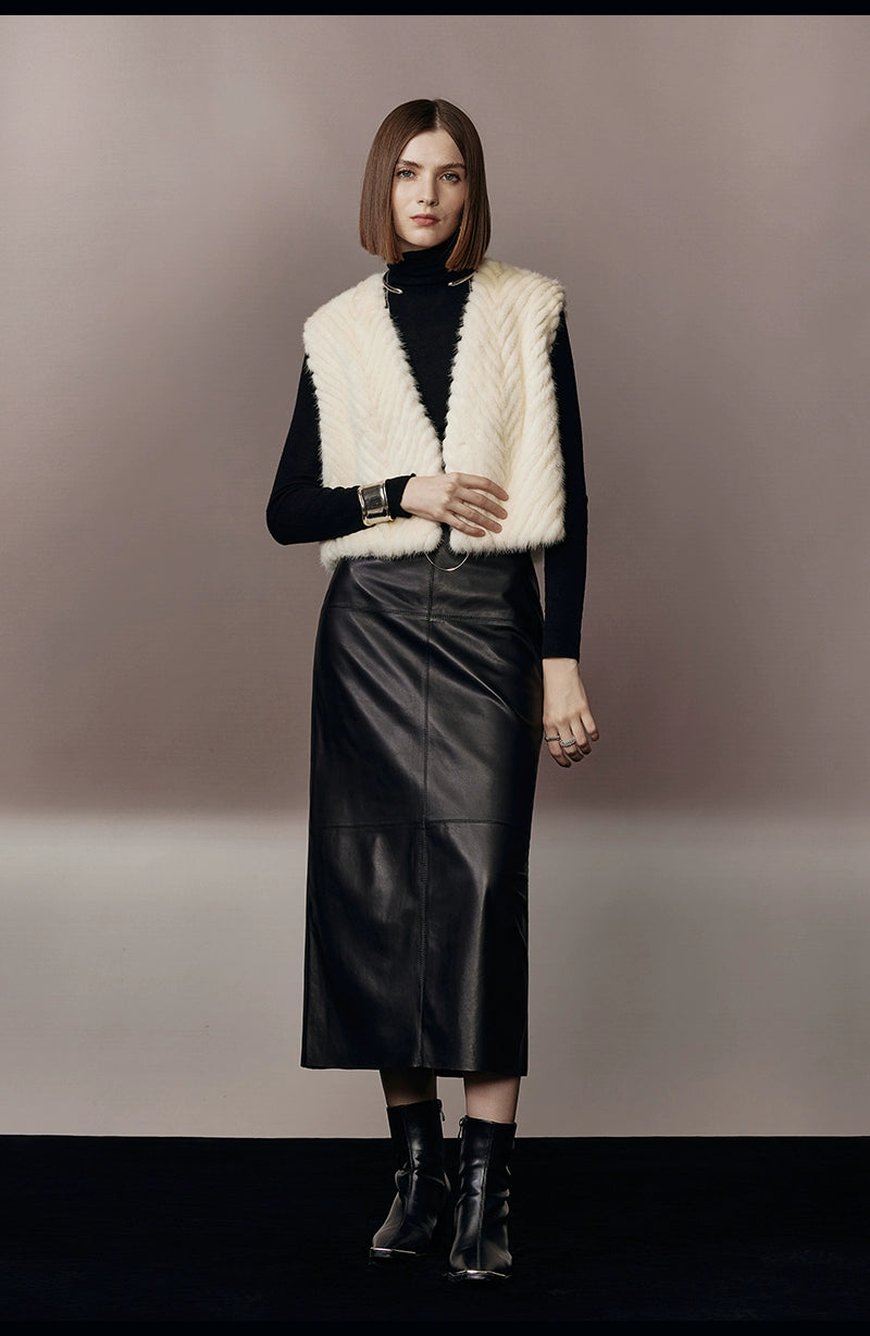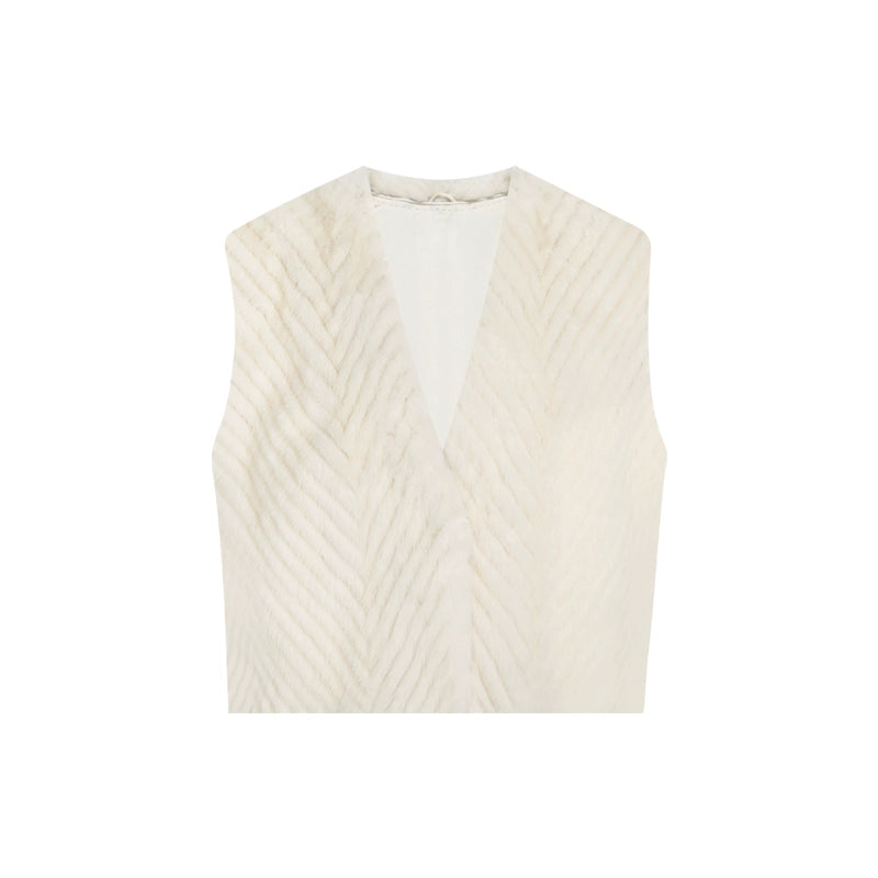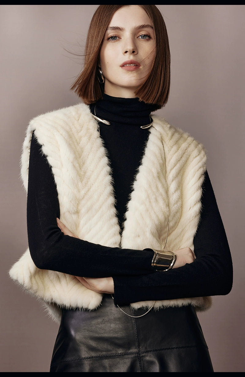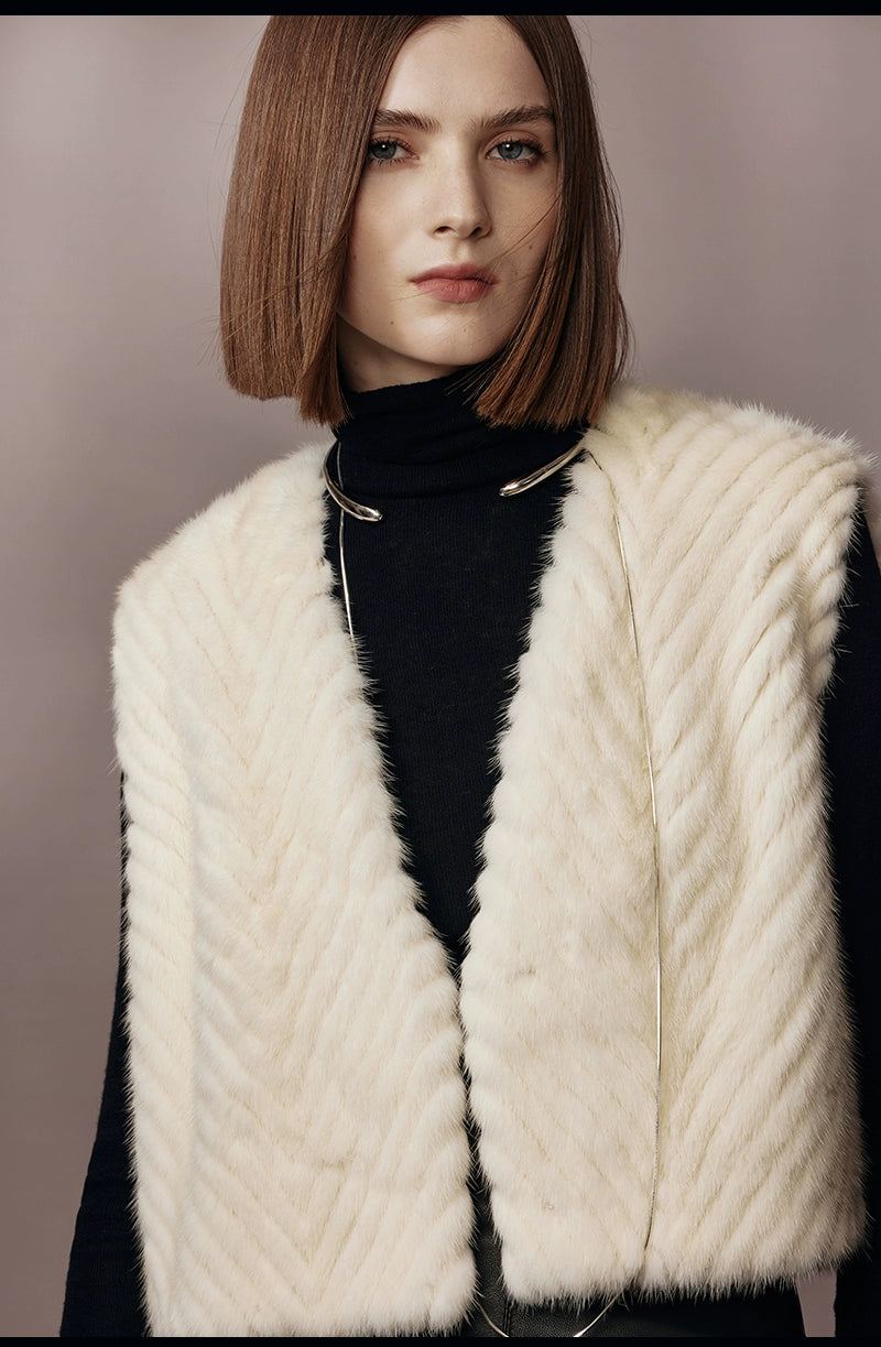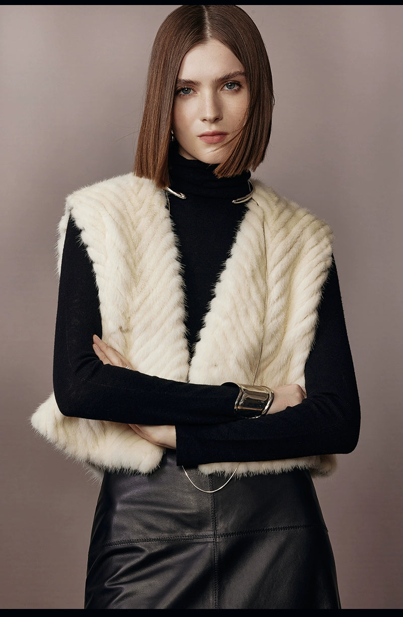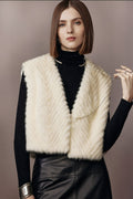 Pearl White Herringbone Mink Fur Vest