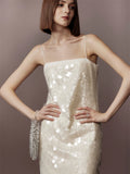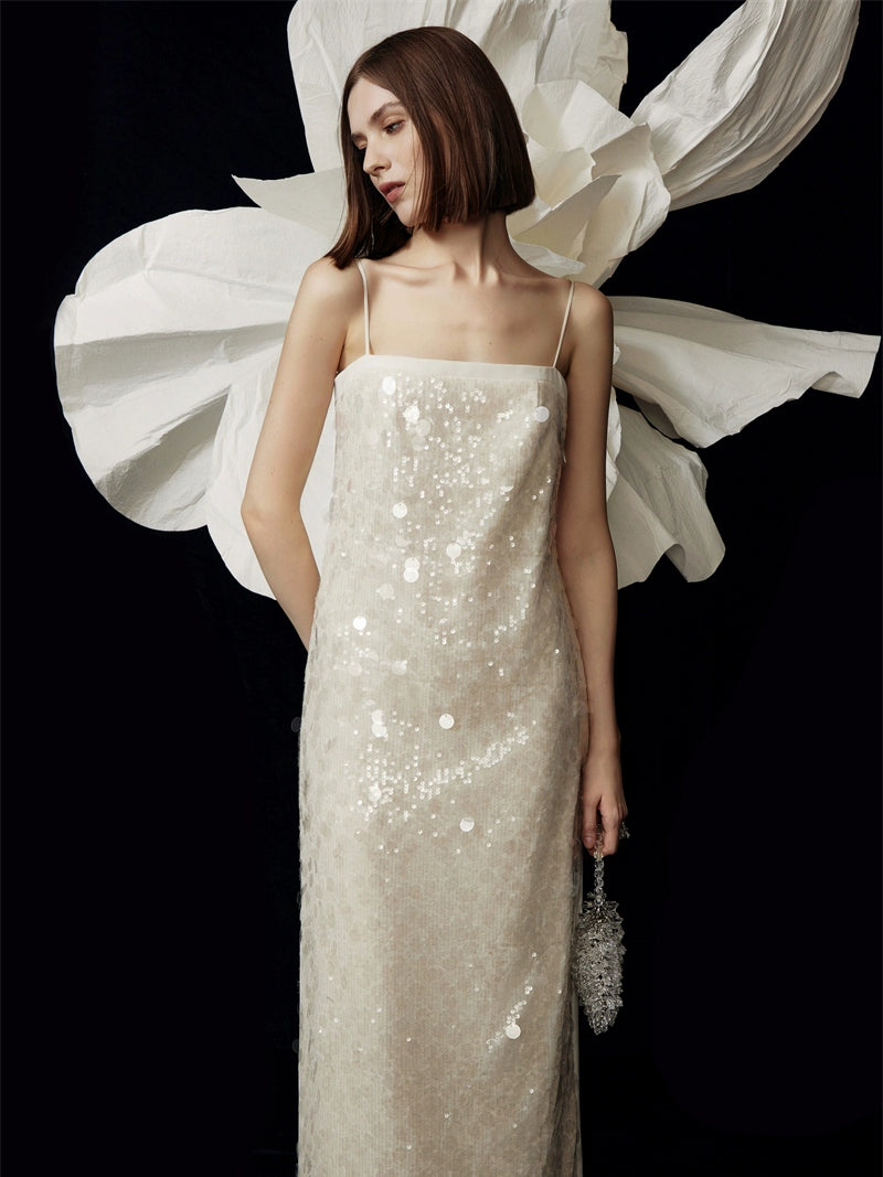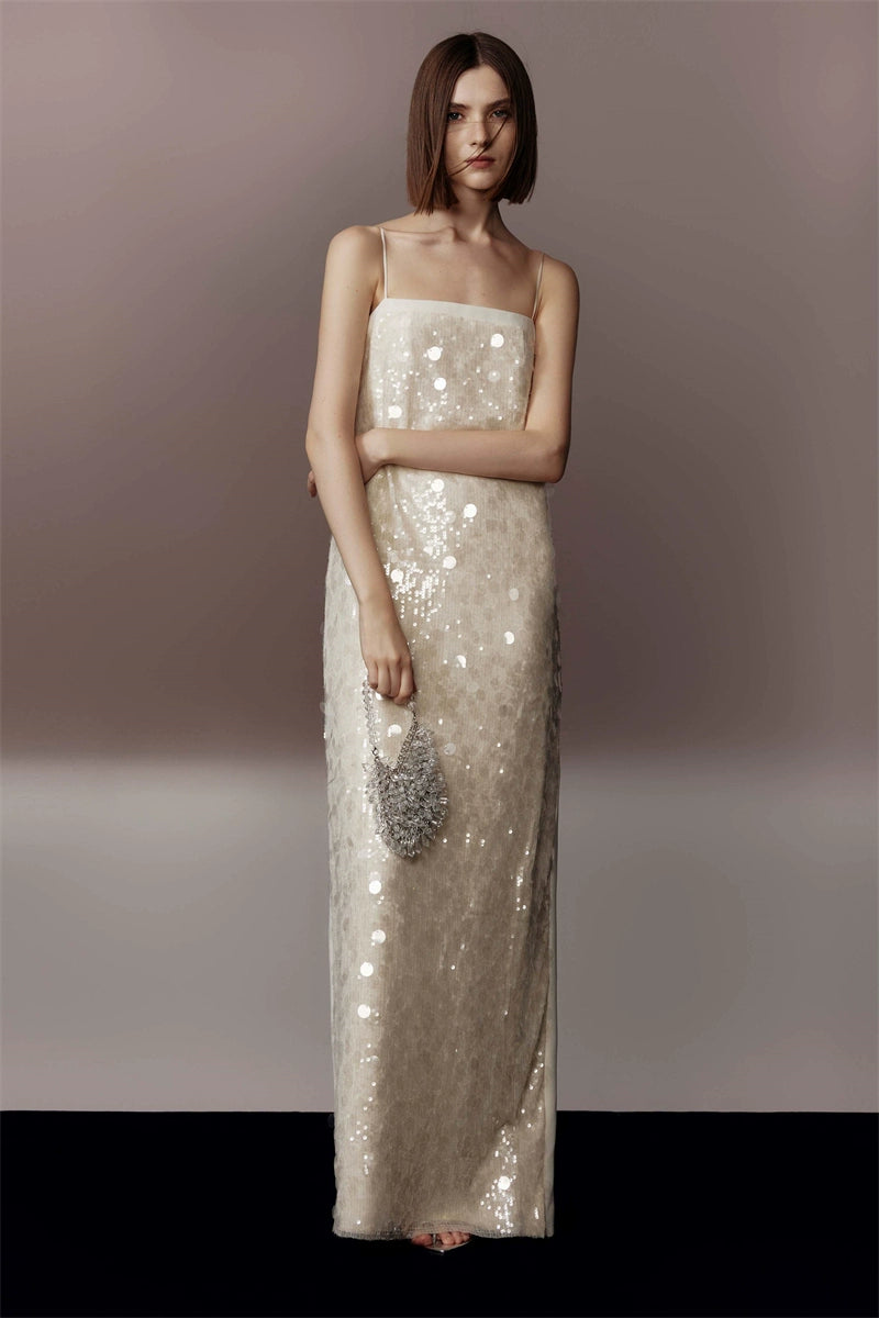 Suspender Sequined Long Party Dress